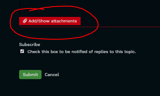 7) Once all your attachments have been added, click the green Submit button below the editor to add your topic/message to the forum.